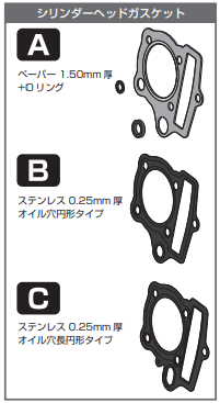 ボアアップ KIT 85/88/104/108cc用 パッキン SET-A ラインナップ