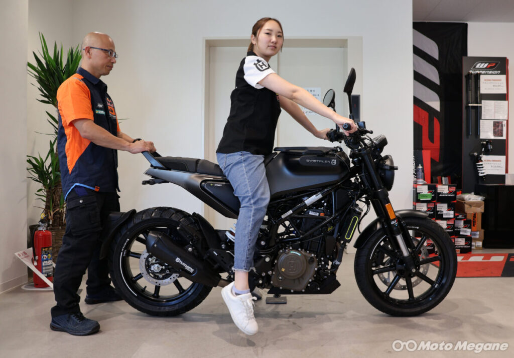 ローダウンサスペンションキットを組み込むと、装着前はまったく足が着かなかったが、装着後はつま先がしっかりと着くようになった(モデルの身長は158cm)。