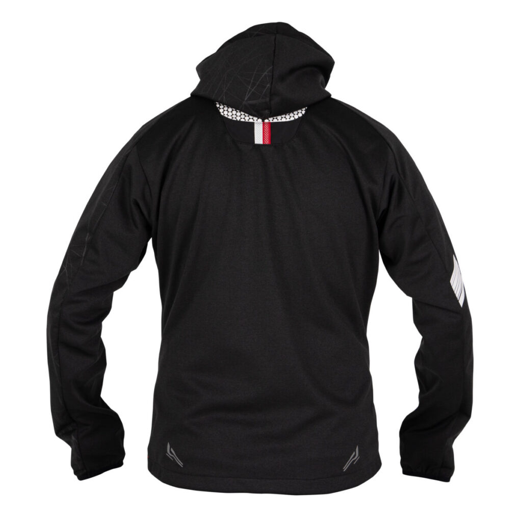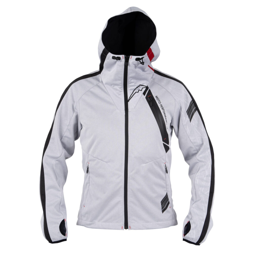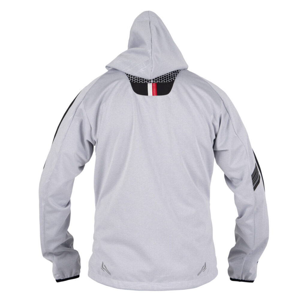 〇フードや左袖にはスプレット柄エンボス生地を採用しスポーティな印象に
