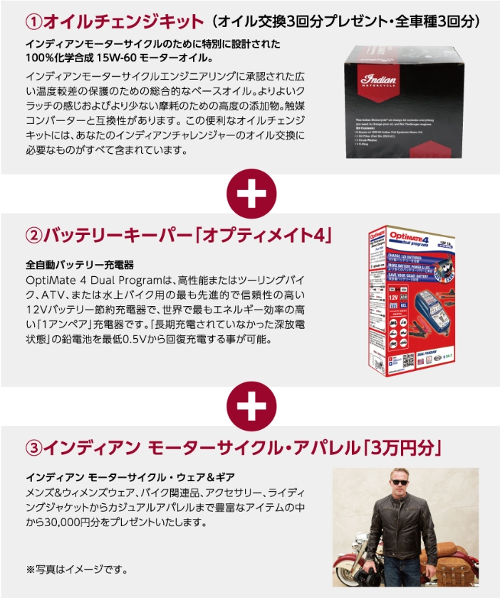 インディアンモーターサイクル新車モデルをフェア期間中にご成約いただいた方には、より快適なツーリングをお楽しみいただけるプレゼントをご用意しております。詳しくはスタッフまでお声がけください!