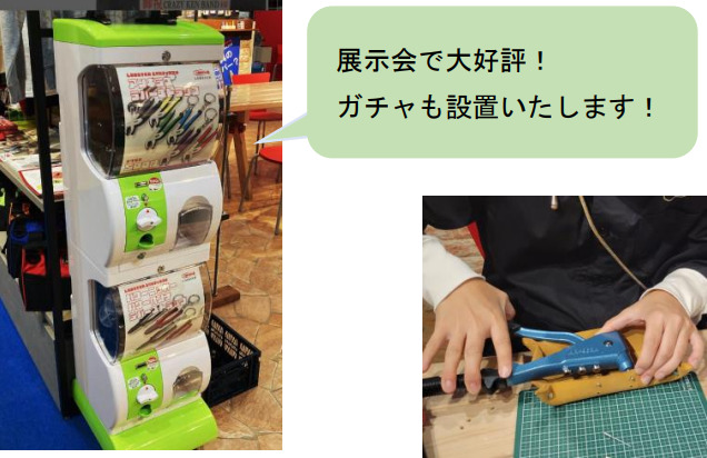 同社ブースでは、オフィシャルグッズの販売のほか、革のトレー作りなどワークショップも開催予定となっている。展示会で好評のガチャも設置され、子供から大人まで楽しめるに違いない。