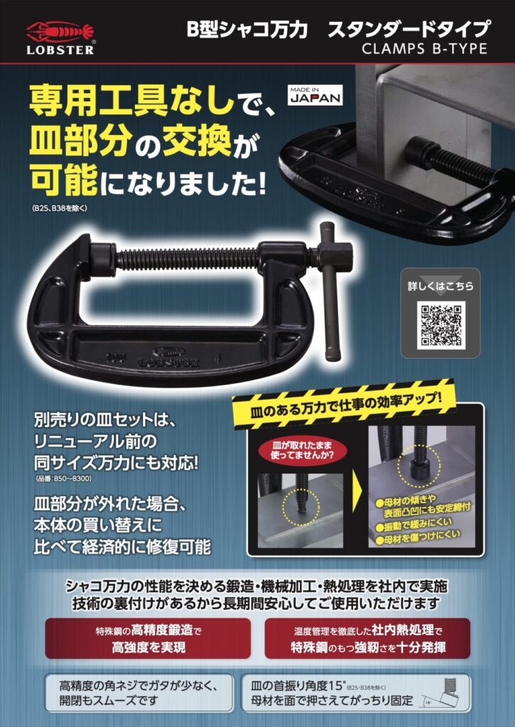 創業 134 年の老舗工具メーカー株式会社ロブテックスは、B 型シャコ万力 スタンダードタイプ B-A/皿セット B-ASを発売する。万力の皿部分を専用工具なしで交換することができ、万一皿部分が外れてしまった場合でも皿セットの交換で経済的に修復することが可能となる。