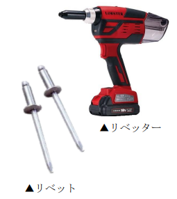 締結方法の一種。溶接のようなテクニックがいらず、誰が作業しても失敗せず、仕上がりがきれいなことが特長。リベッターを用いて作業する。