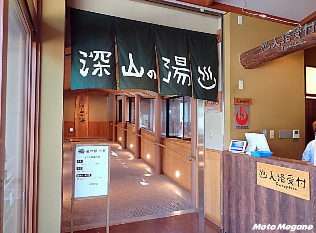 日帰り温泉施設では、源泉掛け流しの温泉を楽しめる。温泉は、温度の違う2つの源泉の混合泉で鉄分を含んだ茶褐色の湯。泉質はナトリウム-炭酸水素塩・塩化物泉で、入浴すると身体が芯から温まる。熱湯とぬる湯、2つの浴槽がある内湯、露天風呂、サウナ、水風呂を完備。熱湯は加水・加温なしの源泉掛け流し。畳の広間もあり湯上がりには休憩ができるので、ツーリングの合間のリフレッシュに最適だ。入浴料は大人700円。なお、食事処で500円以上の食事をすると、入浴料が半額となるのでおすすめだ。(食事・温泉どちらが先でも割引は適用)
