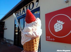 『道の駅 湯の香しおばら』内にある「あぐりのかふぇ」では、塩原産の旬の農産物を使った手作りジェラートを提供している。4月中旬に訪れたときには栃木県限定栽培の幻のいちご「とちひめ」を使ったもの、5月下旬には、甘酸っぱさが爽やかな「とちおとめ」や、アスパラ、さらにアスパラが終わる頃には「トロかぶ」を使ったカブのジェラートと、季節ごとにラインナップが変わる。