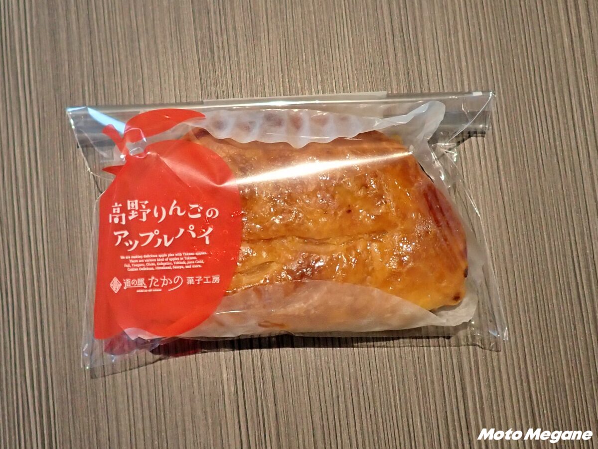 年間6万個が販売される人気No.1商品。道の駅内の工房で製造されており、パイ生地の中には高野りんごのコンポート、自家製のダマンドクリーム、リンゴジャムが包まれている。程よい甘さとゴロっとしたリンゴのパイは、お土産に最適だ。