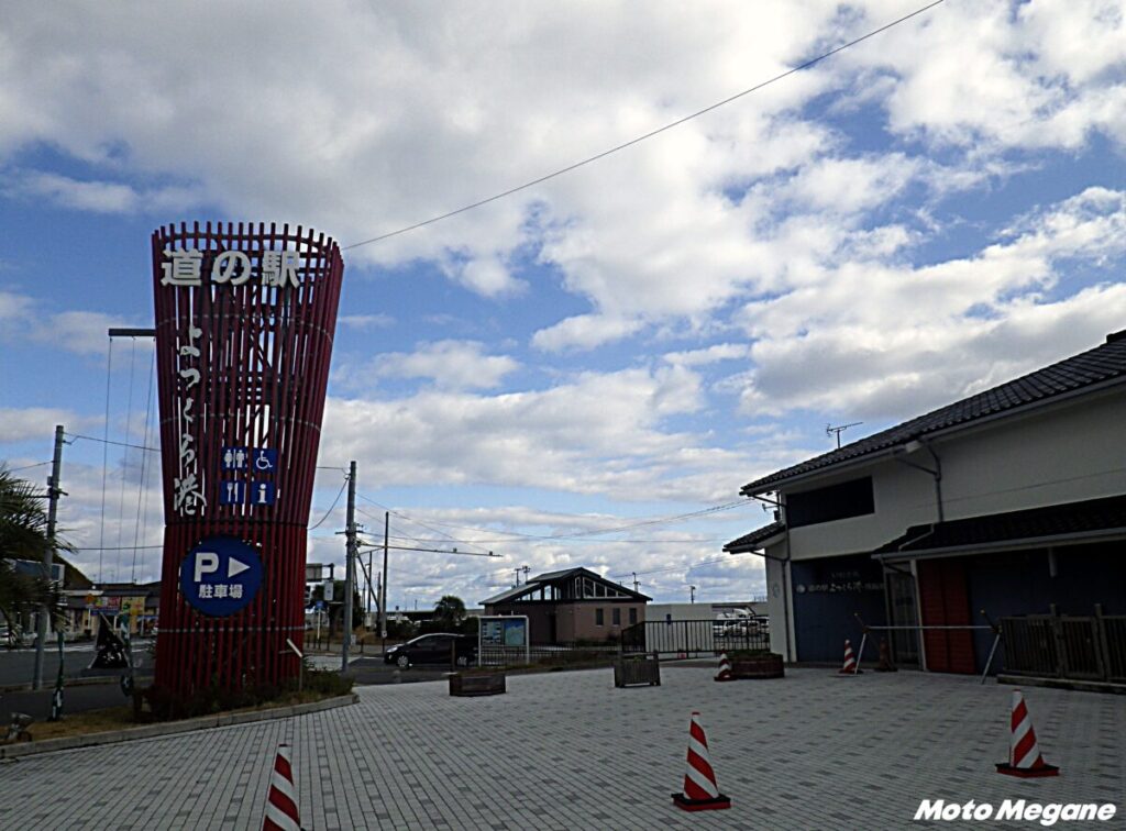 『道の駅 よつくら港』は、いわき市四倉町の国道6号線沿いに位置。常磐自動車道のいわき・四倉ICから県道11号経由で約10分とアクセスは抜群だ。漁港内に作られた道の駅で、2011年の東日本大震災により被災したが、2012年に建物を一新しリニューアルオープン。現在の2階建ての建物となった。すぐ目の前が四倉海岸で、隣接する四倉海水浴場の駐車場(無料)を利用することもできる。道の駅入口には大きなモニュメントが建てられている。