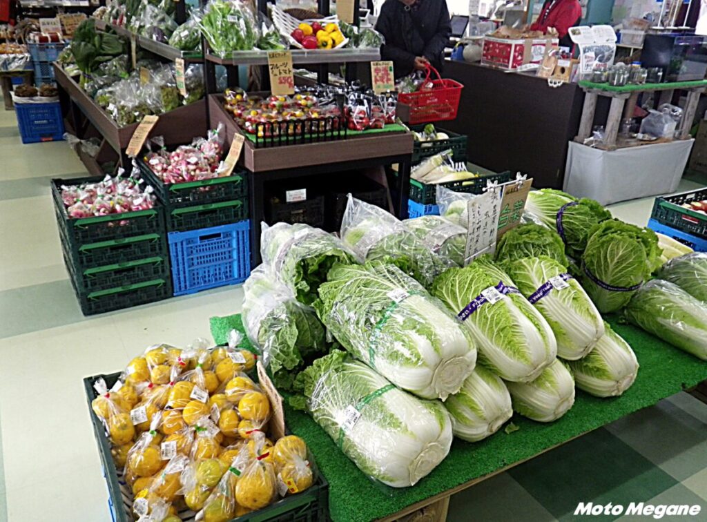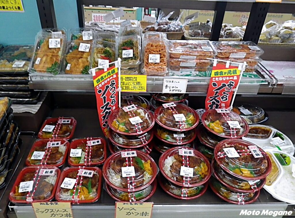 建物1階に直売所、2階はフードコートとなっており、屋外ではテイクアウトのカフェが営業。直売所には、地元産の朝採りの野菜や果物、漬物やサンマの味醂干しなどの農水産加工品、いわきの地酒などが並ぶ。特に四倉名物のソースカツ丼や、ホッキ飯など弁当や惣菜類は充実の品揃えだ。