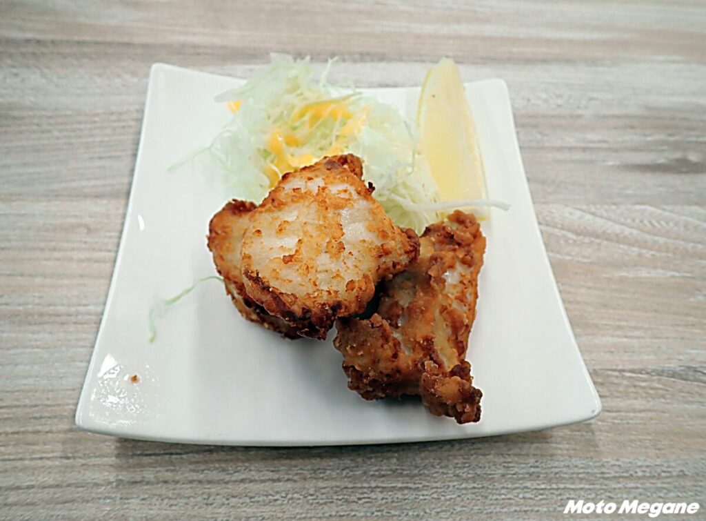 日本三大銘醸地のひとつ、西条のお酒と米粉を使った東広島の新ご当地グルメ。食材を西条酒に漬け込んでから、米粉をまぶして揚げた唐揚げ。日本酒に漬け込んだ鶏ムネ肉はやわらかく、外はカリカリ&サクサク食感。