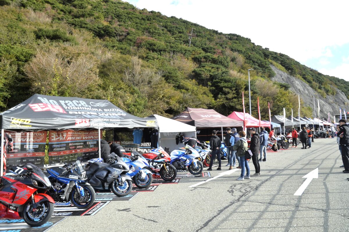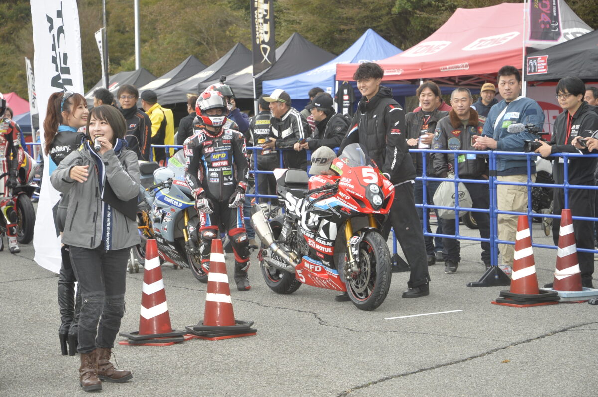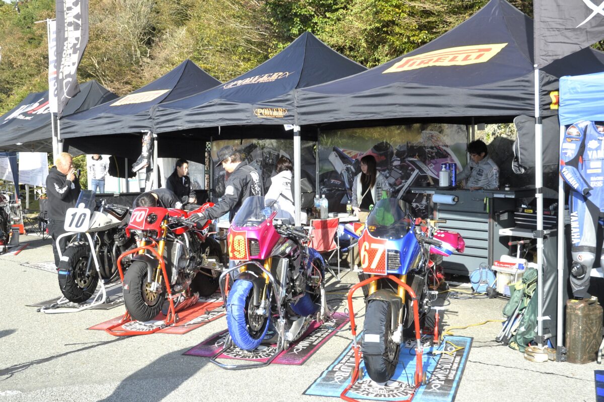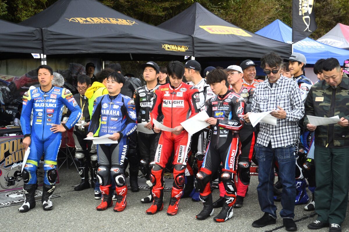 参加したマシン&チームは、磐田レーシングファミリー、ヨシムラスズキライドウィン、オートレース宇部、TONE-RT SYNCEDGE4413BMW、DeLight、KISSキジマレーシング、SP TADAOレーシングなどレーシングバイクの面々。