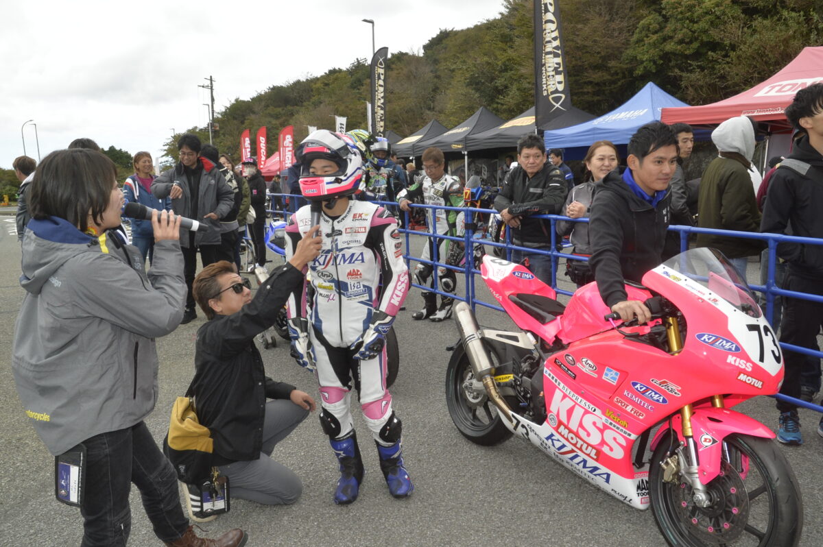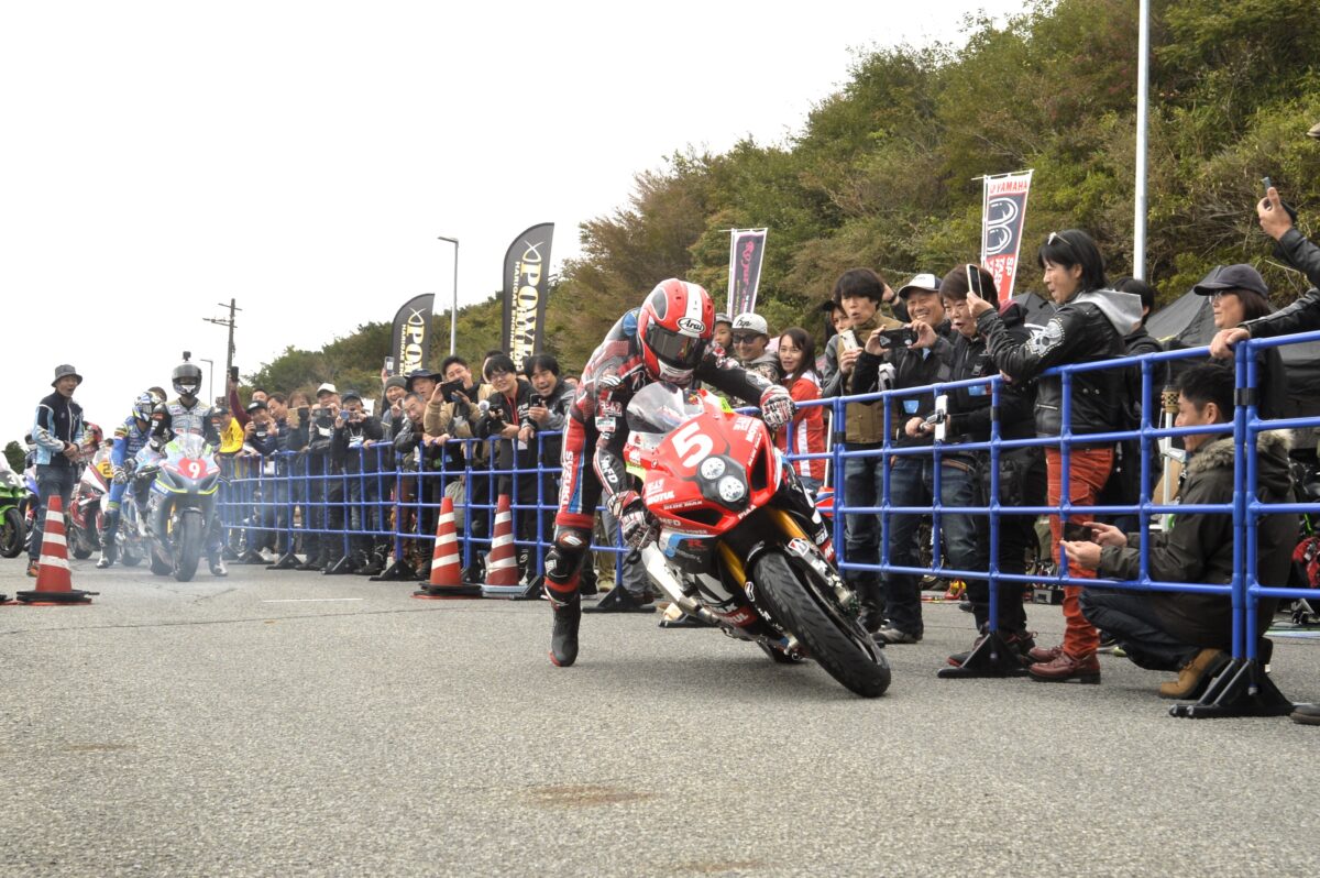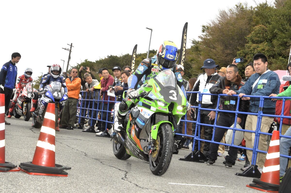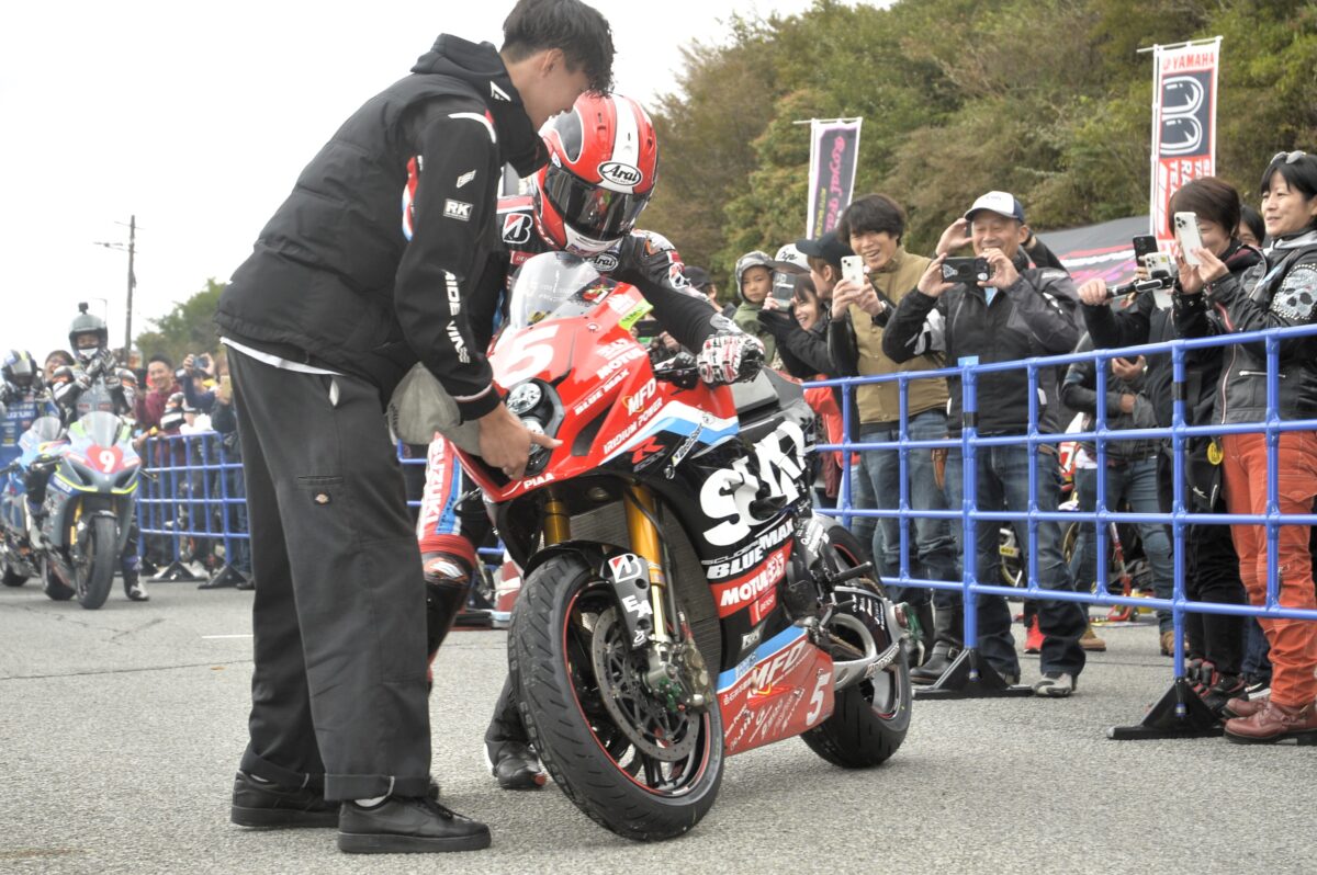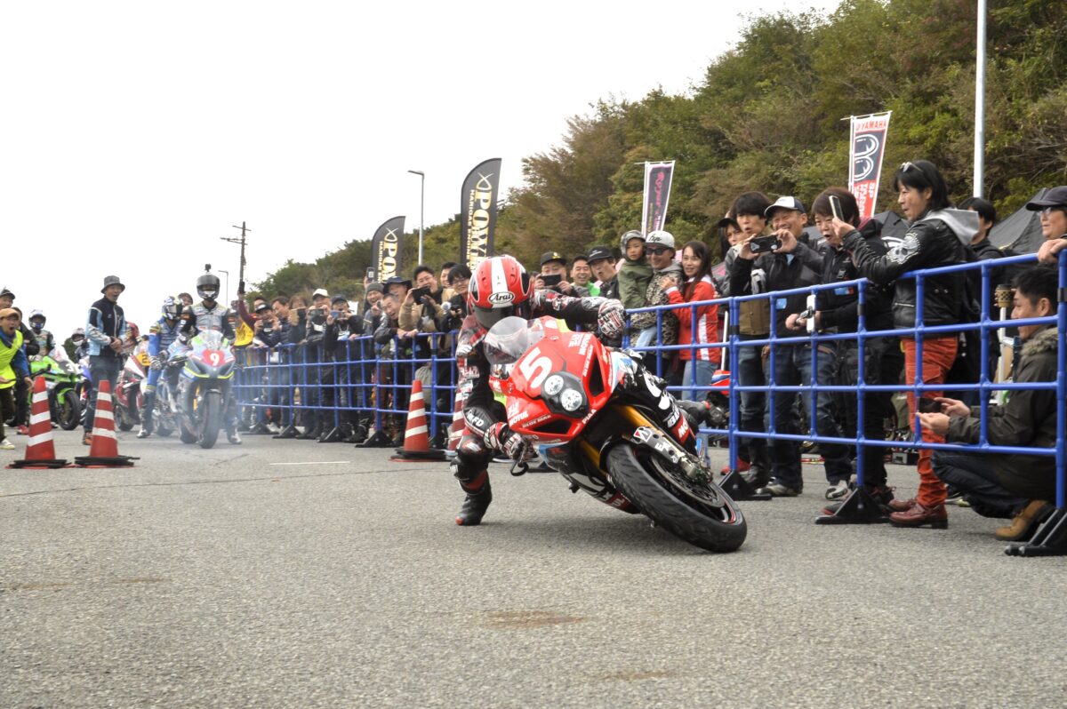 参加したマシン&チームは、磐田レーシングファミリー、ヨシムラスズキライドウィン、オートレース宇部、TONE-RT SYNCEDGE4413BMW、DeLight、KISSキジマレーシング、SP TADAOレーシングなどレーシングバイクの面々。