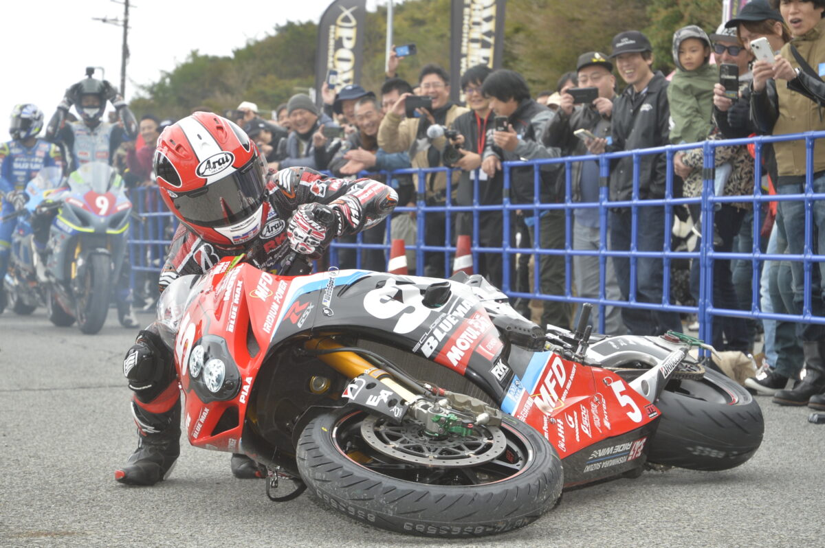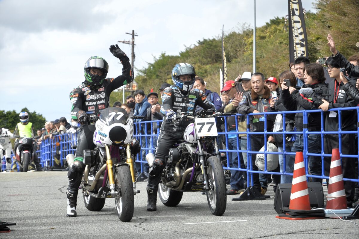 他にも、IRF磐田レーシングファミリーのヤマハYZF-R1、Team DeLight DUCATI パニガーレV4R など国内外のモンスターマシンが目の前で躍動した。また、筑波サーキットで行われている皆さんお馴染みの旧車、オリジナルモンスターバイクによるデモンストレーションランではTeamKAGAYAMAライドウィンの鐵隼を駆り加賀山就臣さんが出走。OVER Racingの OV43やパワービルダーのマシンが咆哮を上げた。