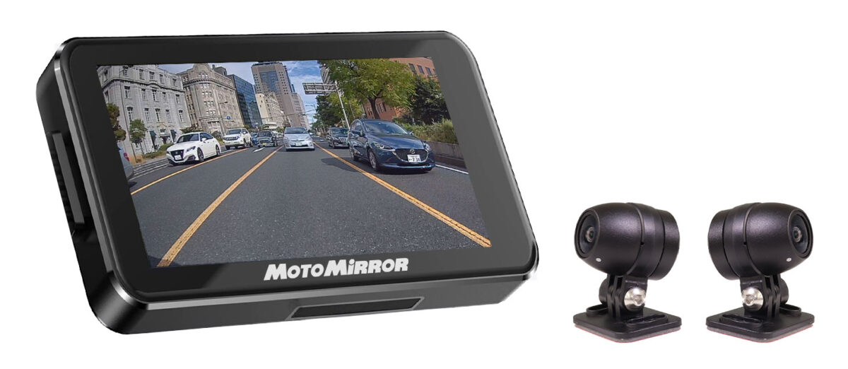 同製品は、4インチの大型モニターとリア部分にカメラを設置することで後方全体の確認が可能になり、ドライブレコーダー機能も搭載し前後同時録画もしてくれるバイク用アイテムとなる。前後カメラとも200万画素のFullHD録画が可能で、事故やあおり運転だけでなく、ツーリングの思い出を記録するのにも適したキレイな映像が楽しめるのが特徴だ。