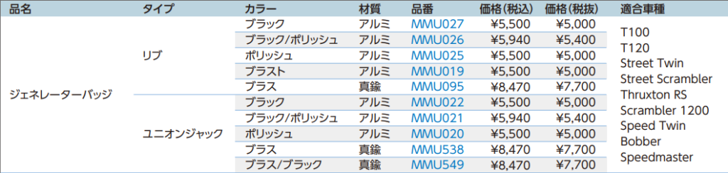 Motone ボンネビルパーツに特化した「モートーン カスタムズ」から各種ジェネレーターバッジが発売中!
