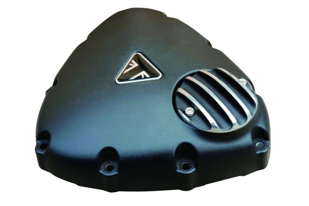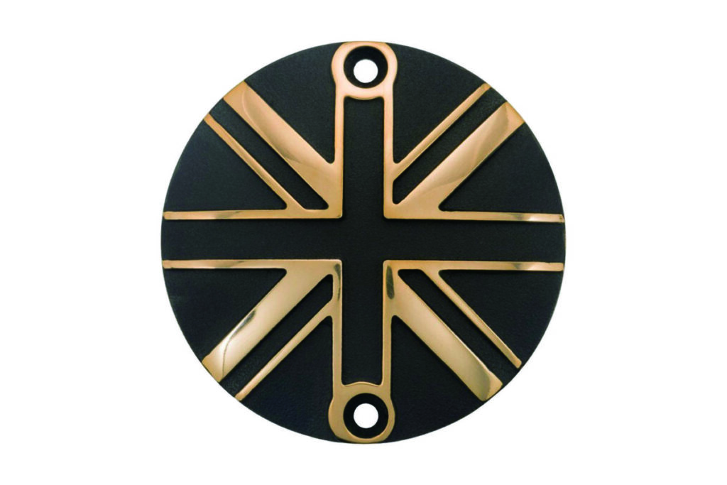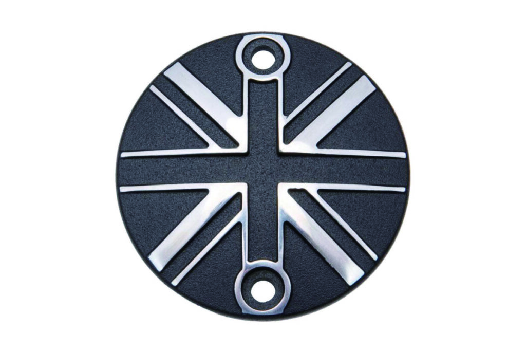 エンジン右側に装着するポイントカバー。クラシカルな「リブ」とポップな「ユニオンジャック」の2デザインをご用意。高圧ダイキャストと鍛造を巧みに使い分け製法にもこだわりました。優れた質感で細部の高級感を