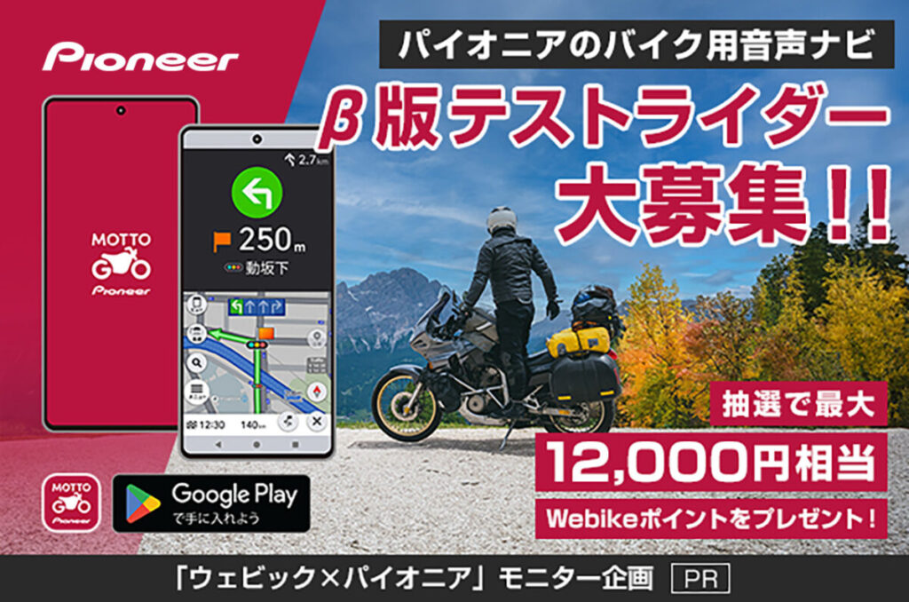 パイオニア株式会社は、バイク用音声ナビ「MOTTO GO(モット ゴー)」β版を2023年10月31日より提供を開始した。
