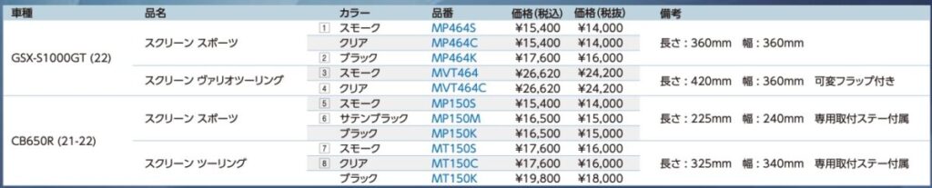 GSX-S1000GT CB650R 各種スクリーンを新発売!