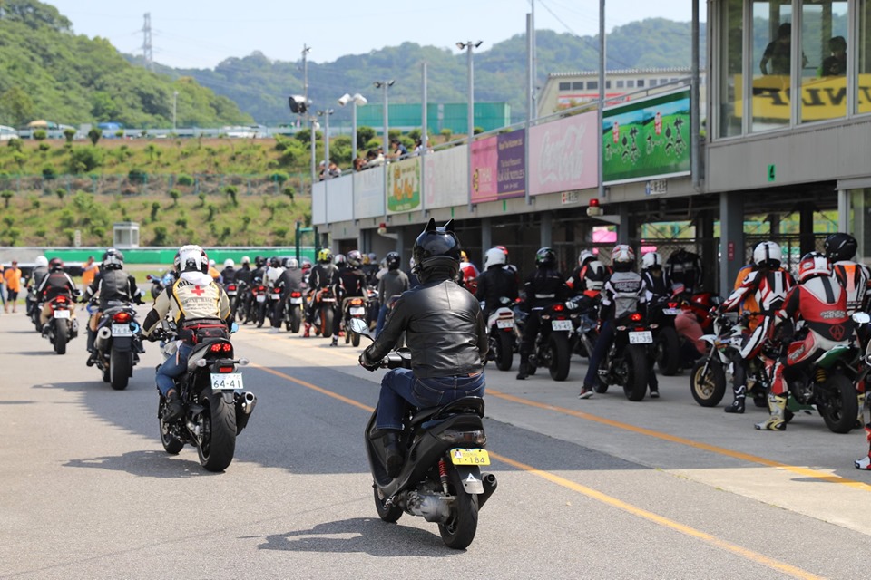 月に1回のペースで、初心者、上級者それぞれに応じたグループ講習会も開催しています。初めてサーキット走行をする方には、バイクの乗車姿勢や走行時の目線などの基本、上級者にはコーナリングでのブレーキのかけ方のコツをレクチャーしています。また、開催クラスによっては、レーシングスーツ(いわゆる「つなぎ」)を着用しなくても、私服で気軽に参加できるものもあります。50代男性を中心に、高校生から80歳近いライダーまで幅広い世代が参加しています。