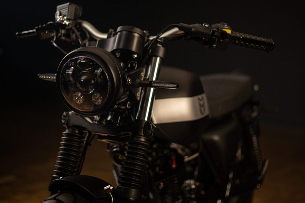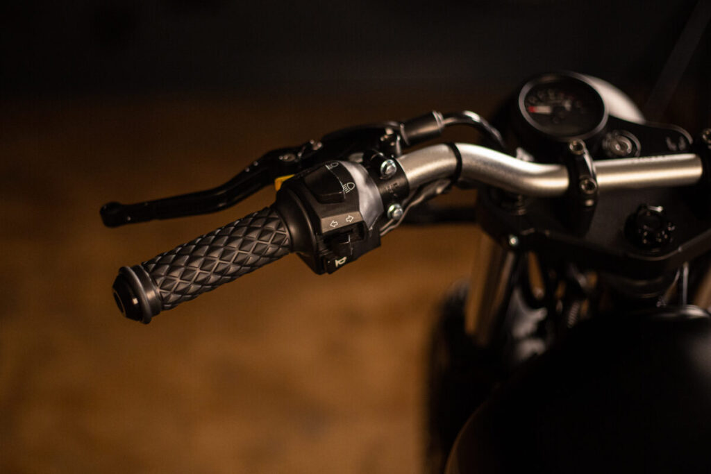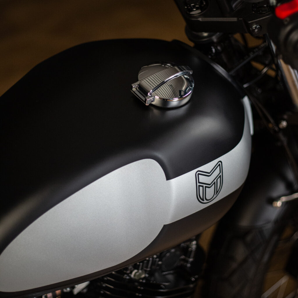 15リットルタンクとアルミニウムワイドマッドガードを装備、ブラックを基調としながらも、ブリットバイクのルーツであるクロームメッキを随所にあしらうことで楽しさを演出しています。