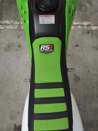 前後への体重移動が楽にできるよう、シートをフラットな形状に変更。シート表皮はグリップしやすい生地に変更しダートでの走行性能がアップ! シート高アップに合わせて、ハンドル変更とライザーを入れてポジションをスタンディングしやすい位置に変更。