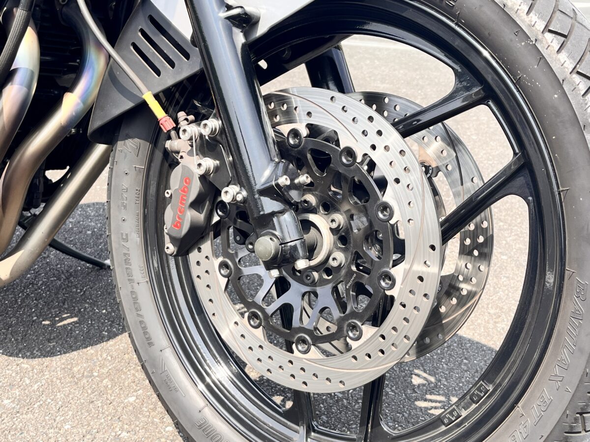 前脚はサンスタープレミアムレーシングとブレンボキャリパー、フロントフォークスプリングはオオノスピードさんの鬼脚。