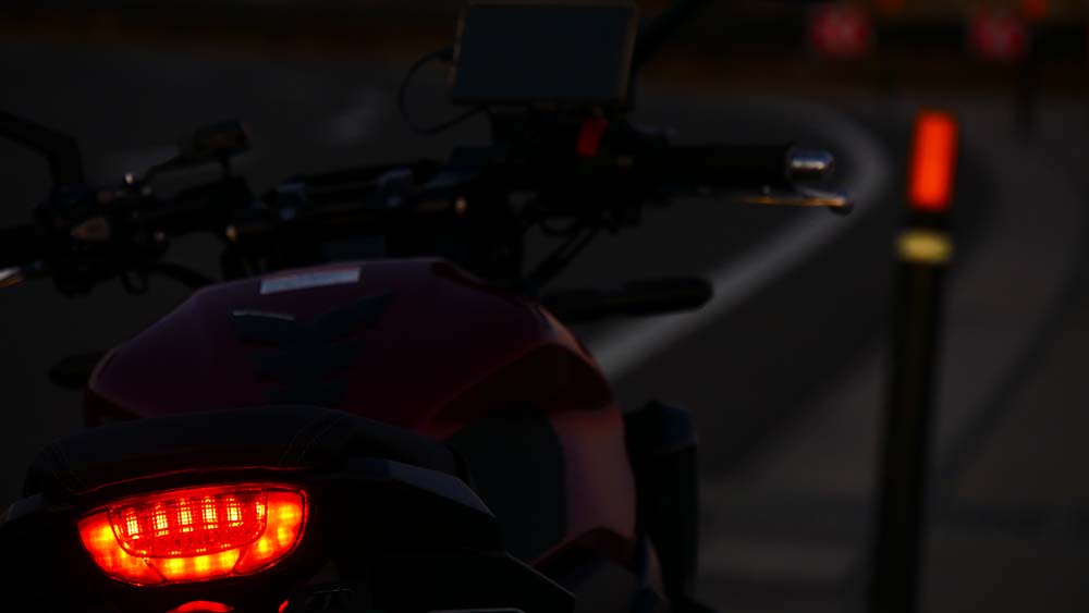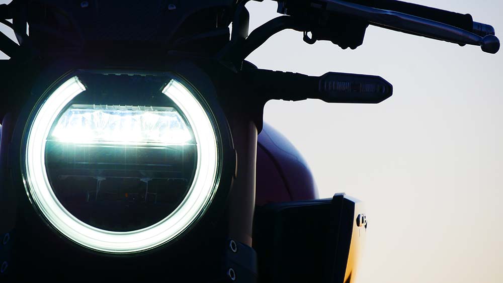イヤリング型丸目ヘッドライトと平行四辺形型シュラウドのバイクらしさと攻撃力、近代感を演出したデザインが男心をくすぐります。