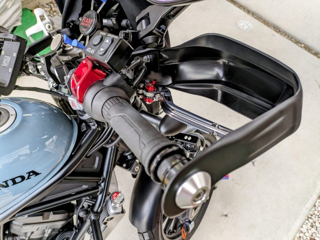 レブル250の兄弟車ですので、正面からのパッと見は似てますが、特徴でもあるアップマフラーにより、レブルとは違った魅力があります。ステップの位置により、足つきは決して良くはありませんが運転姿勢は楽です。