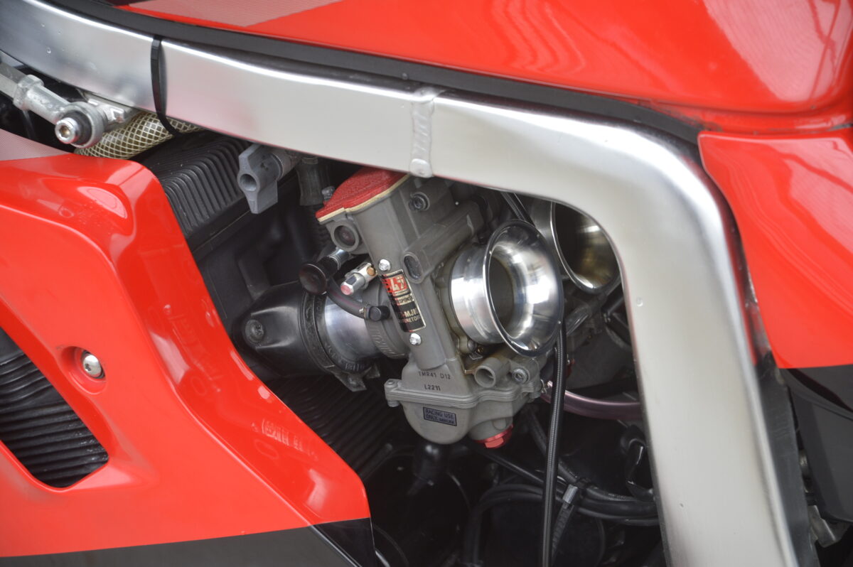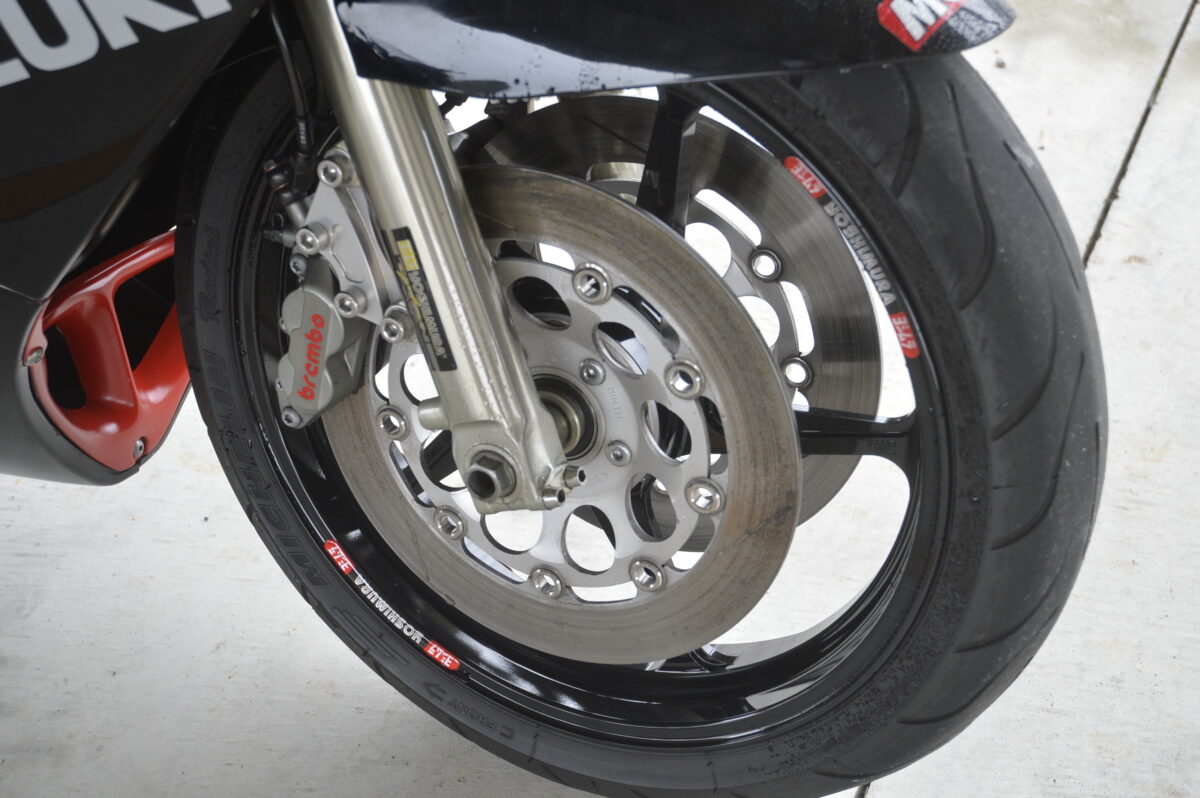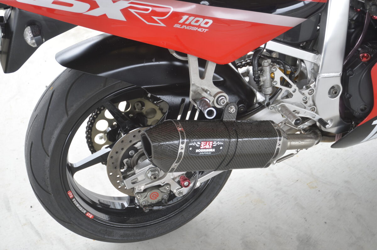 マフラーはもちろん、キャブレターをヨシムラTMRに交換することでノーマルよりパワーアップしています。ノーマルのままではタイヤ選びが限られるのですが、ゲイルスピード製のホイールに交換することでタイヤの選択肢が増えました。ブレーキは前後ブレンボ、リヤサスペンションもオーリンズ製に交換することで、走りも現代的です。ノーマルのままだとパワーは十分ですが、足回りをカスタムしないと最新スポーツバイクにはかなわないと思います。ただ、本格的なスポーツ走行ではなく、ツーリングを楽しむだけなら十分すぎる性能だとは思いますが。