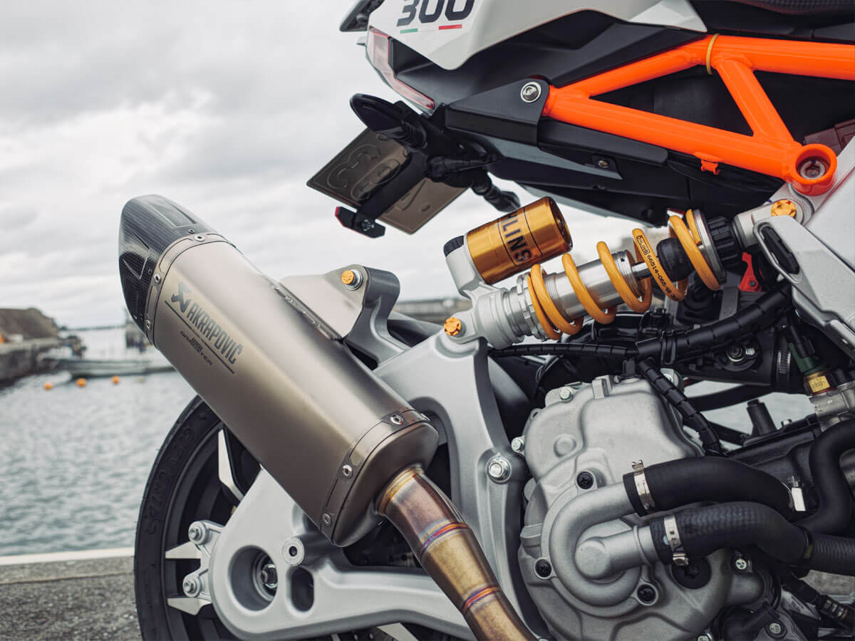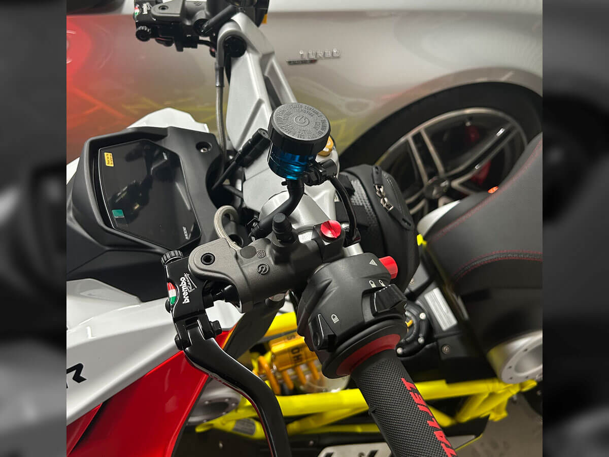カスタムパーツは前後オーリンズサス、前後ブレンボマスター、アクラポビッチ製チタンサイレンサー、フェンダーレス、バーエンドミラー、アルミステップ、バック取り付けステー、マロッシバリエターキット、マロッシベルト、マロッシ強化クラッチ、ボルト類アルマイト交換、その他色々です。