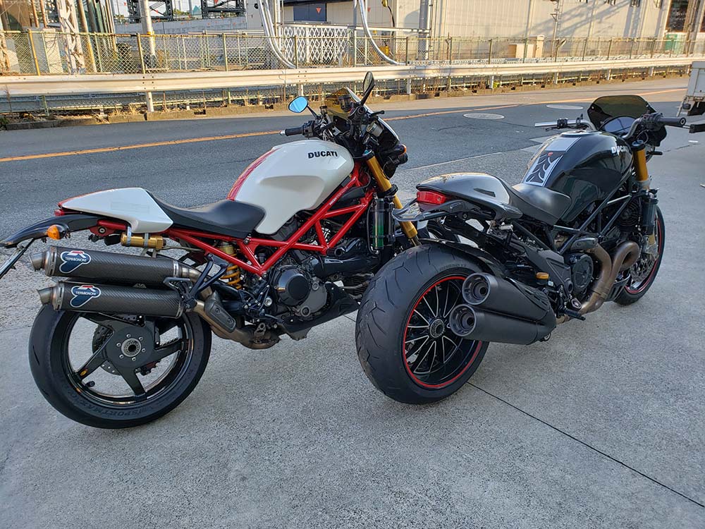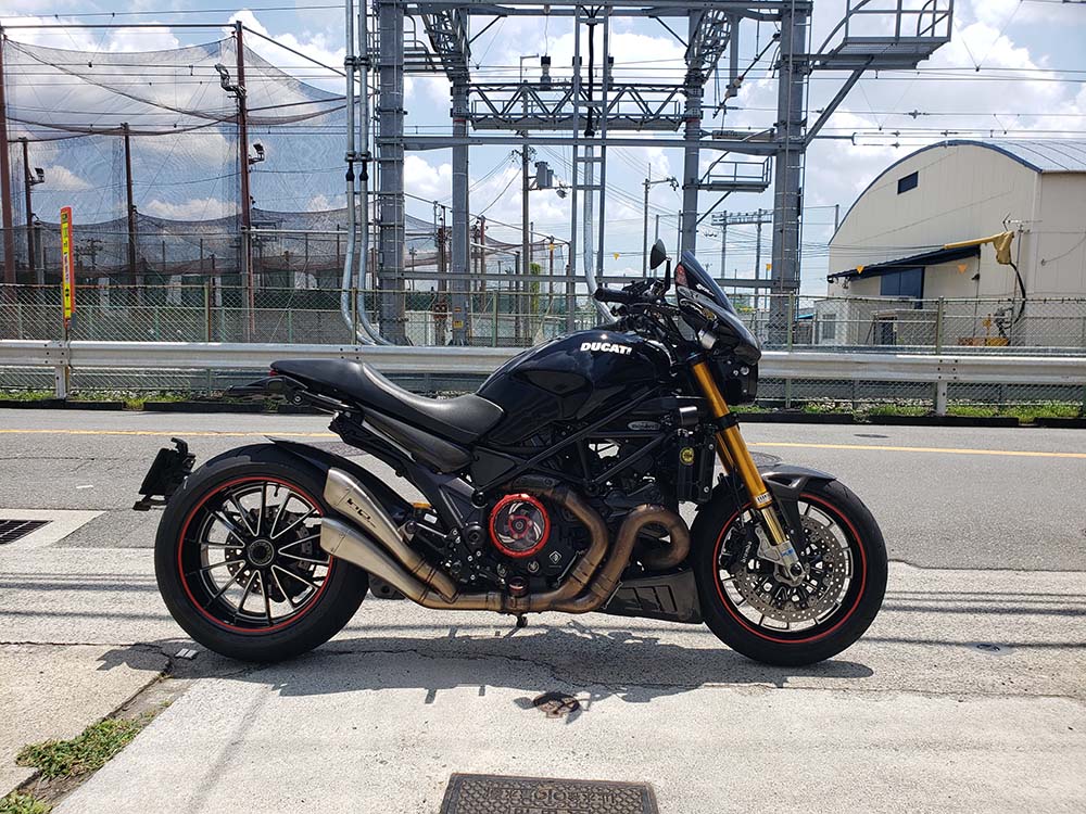 フレームをS4Rs使用しまして、エンジンとリアスイングアーム、リアホイールはドゥカティのディアベルを使用。電装系はMONSTER1200を、使用しております。