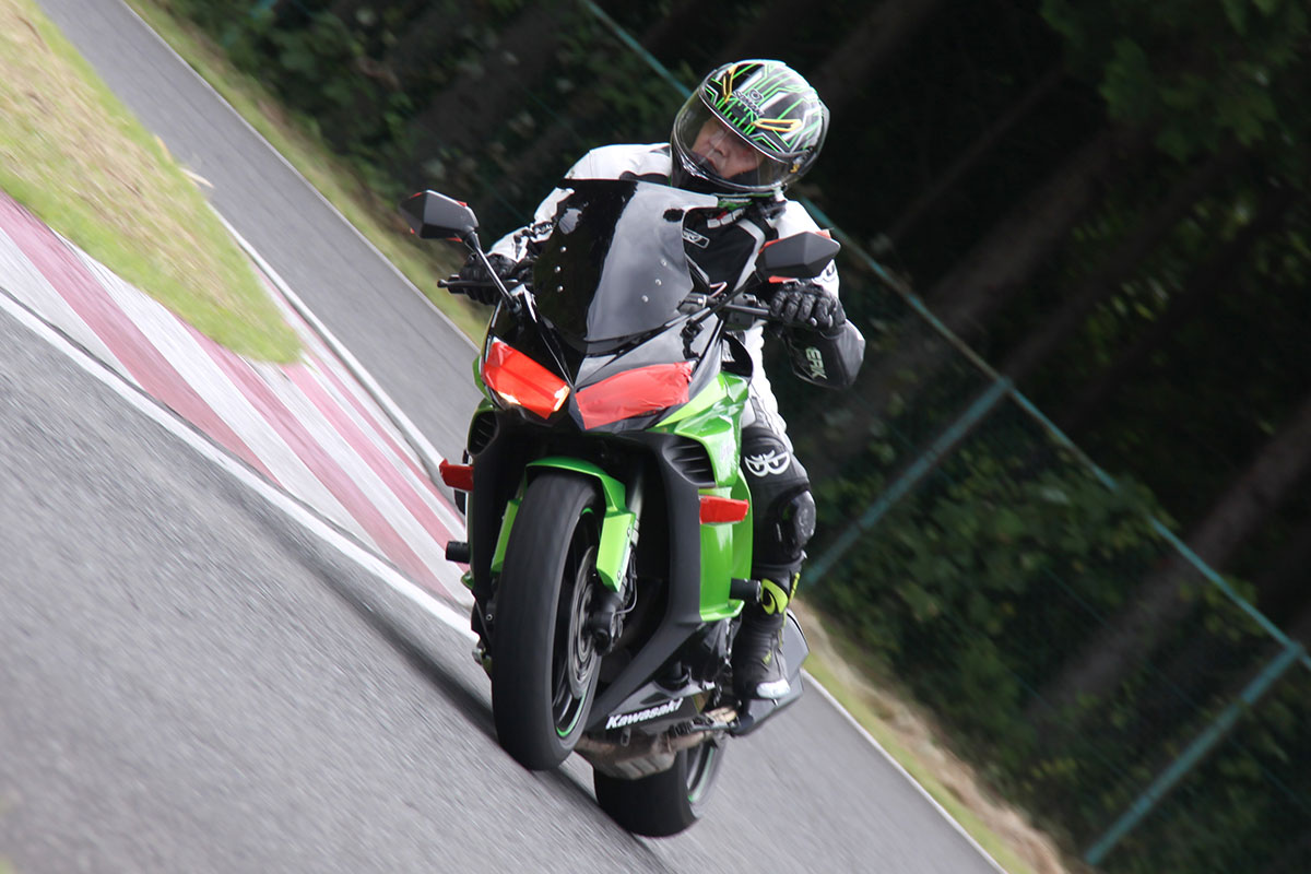 サーキットを走ったときは、自分でも驚くほどコーナーでしっかりバイクを倒すことができました。