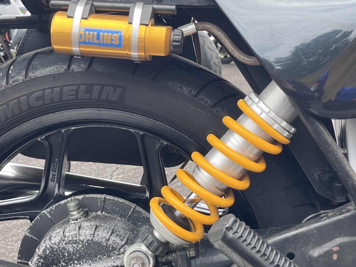 ワインディングをもっと楽しみたいので、足まわりのグレードアップとして、オーリンズのリアサスペンションに交換しました。