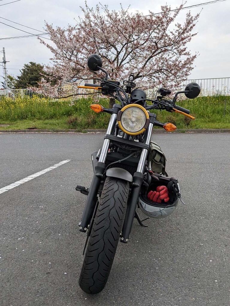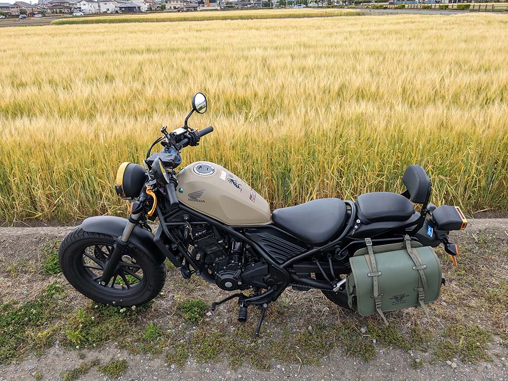 初バイクとしてネイキッドの旧車を捜していたが、メンテナンスで面倒がみれるか不安であったため、足つきの良いレブルに決定した。