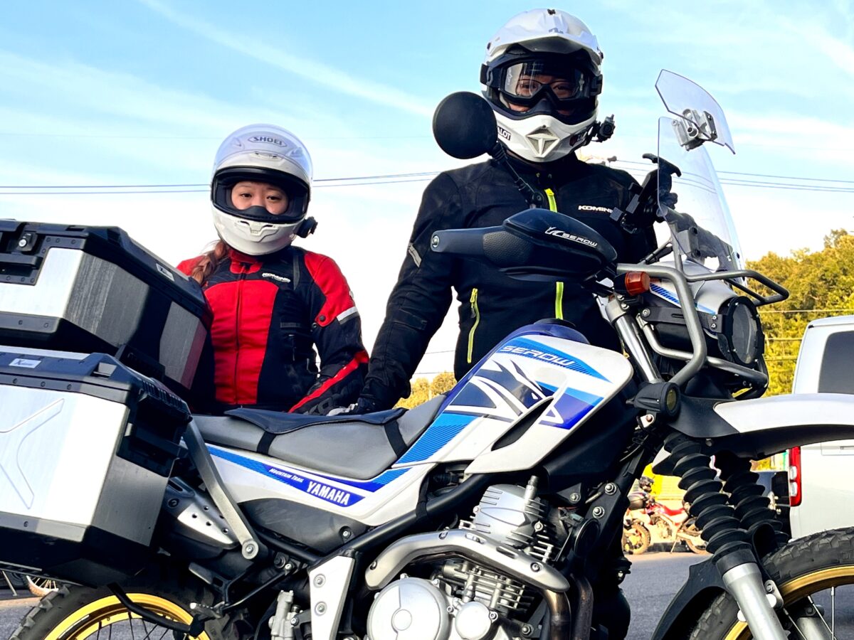 道中はタンデムでほぼ下道、さらにオフロードタイヤだったので、走行会の参加者から「そんな無茶をやるのはアナタだけだ」と驚かれました。