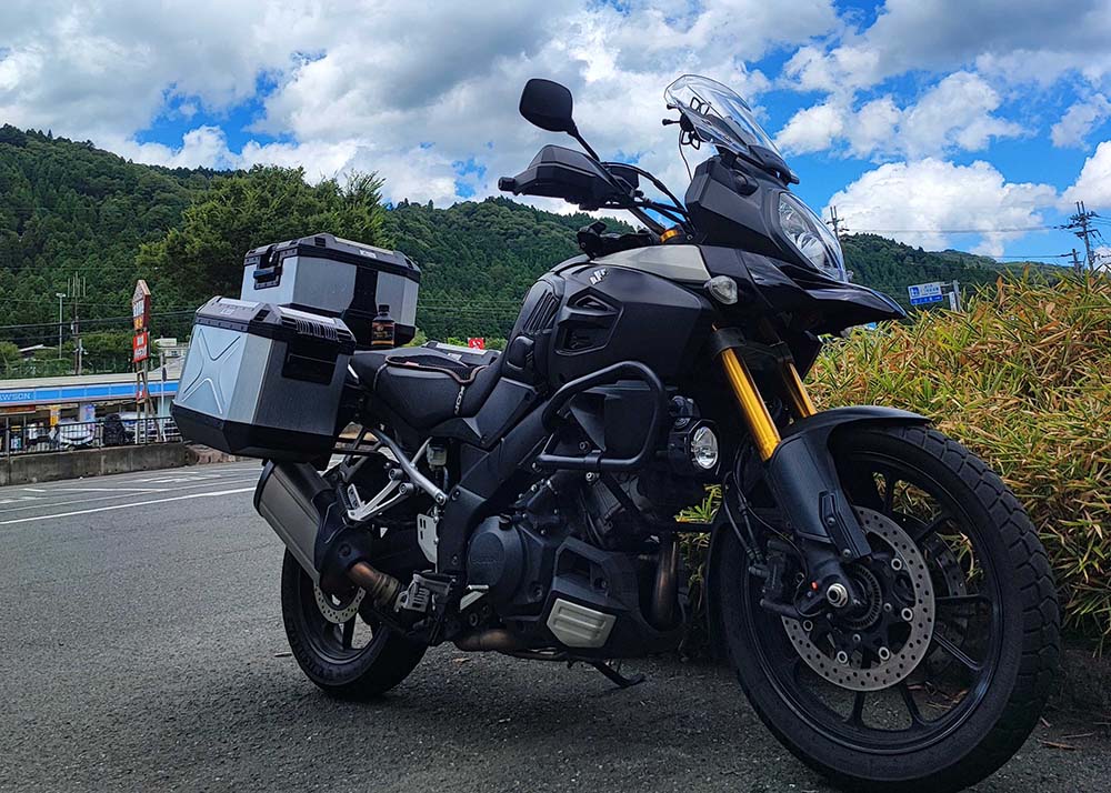 一人でキャンピングカーに乗ってのキャンプはなんか味気ないので、バイクでキャンプをしてみようと思い出会ったバイクがVストローム1000でした。
