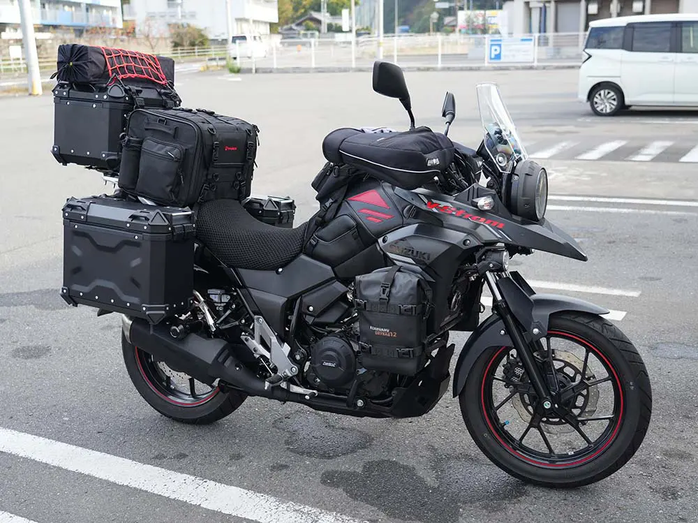 そのような中、Ⅴストローム250の購入を考えていたところ、ちょうど2023年モデルの発表がありました。黒い車体のデザインが好きで購入を決定。パニアケースやトップケースも取り付けることが前提だったので私に適していました。新車価格で65万円程度というのも魅力でした。