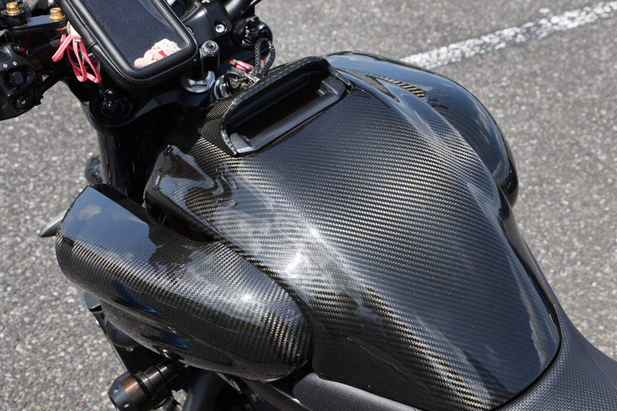 カーボン外装、ワンオフマフラー、マップの最適化等。