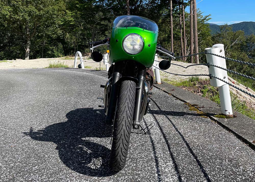 でもやっぱりカフェレーサーに乗りたいと思っていた時に、カフェタイプのW800が発売されてるのを知り、後々理想の形にカスタムしていくつもりで購入しました!