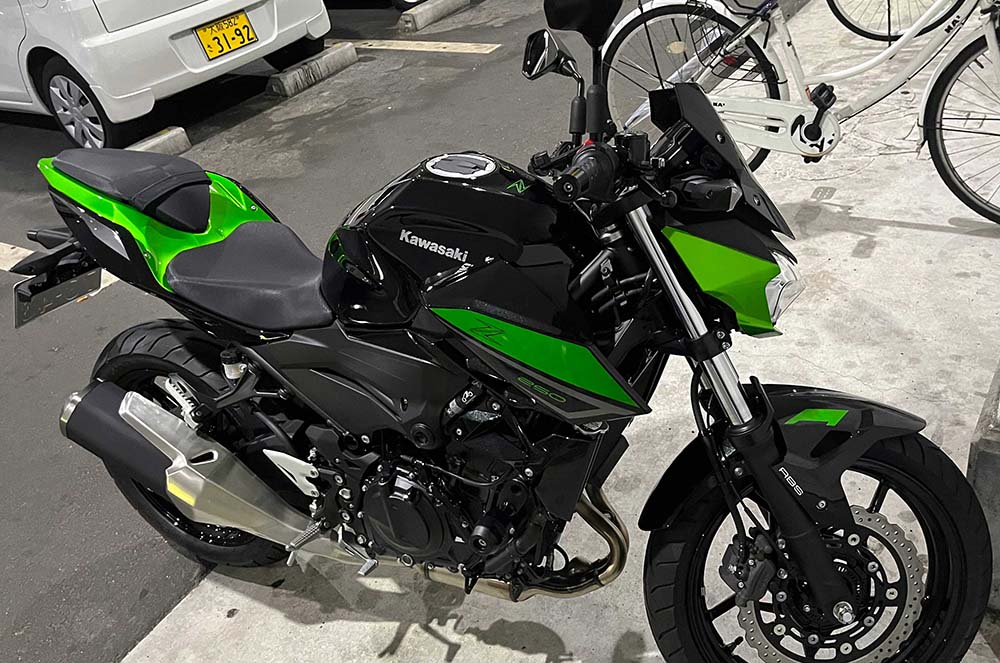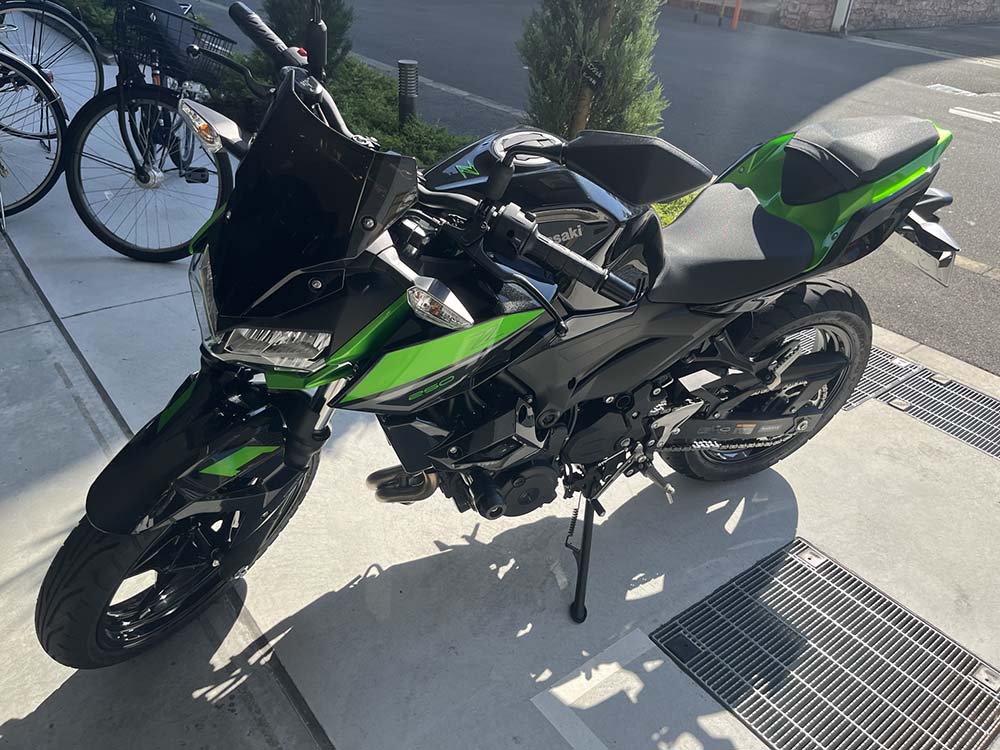 シュッとした見た目が大好きです。あと、カワサキをイメージさせるキャンディグリーンが、さらにカッコ良さを引き立てていると思います。