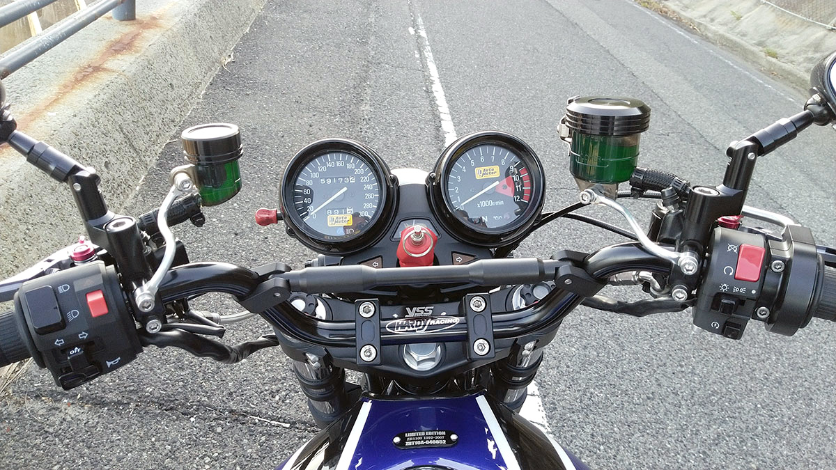 バックステップ、トリプルツリー、ハンドル、すべて交換しているので、ノーマルのイメージはない。当時のノーマルの記憶では、フロントが18インチということもあり、安定した印象だった。