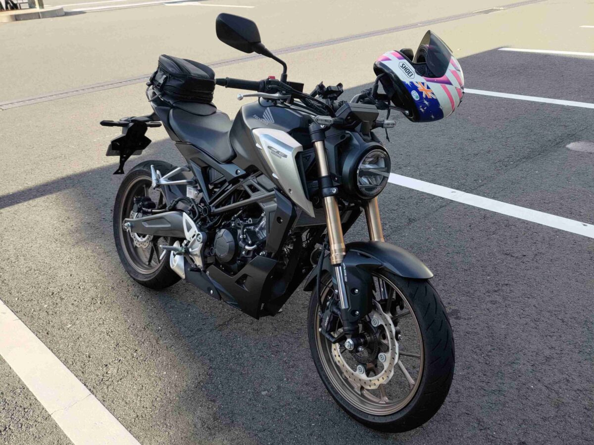 16歳の頃より車よりバイク三昧。NS-1、JOG-Z、CBR250RR、NSR250R、TW200と乗り換え。子供が通学に原付を使用したいというのでネットにてボロボロのVOXを購入、レストア、カスタム致しました。原付ですが日々触っていると再びバイクで通勤しようと思い始め、財布にやさしい原付2種を探しました。当時モデルチェンジしたばかりのCB125Rが良いと思いバイク屋をめぐりましたがどちらも納期1年ほどかかるとのことでした。たまたまネットにて個人売買のCB125R(DOHCの新モデル!)を見つけ、しかも走行35Kmの極上車でお値段も新車価格よりリーズナブルでしたので即購入しトラックにて引取りに行きました。
