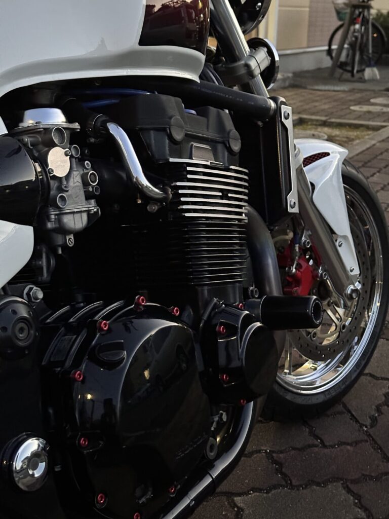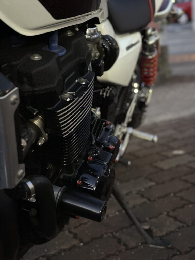 エンジンは全体的に黒に塗装しています。 スイングアームも黒に塗装しています。