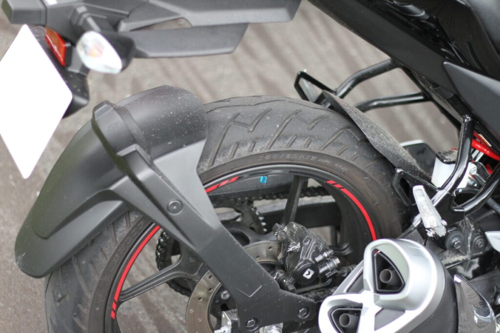 二重のマッドガードで泥はねがシャットアウトされるので、荒れた道も気兼ねなく走れる。