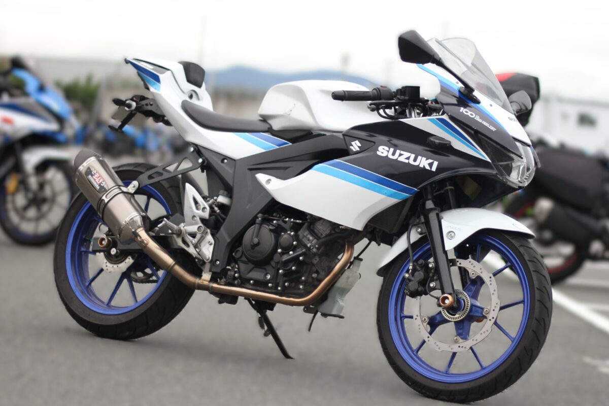 フルカウル+125ccで探し、当時唯一の現行車種であるジスペケを選択。タイミングよく白モデルの在庫が見つかり即決しました。 逆輸入車のYZF-R125やCBR125Rも検討しましたが…MotoGPのGSX-RRと同じデザインのGSXR125がかっこよすぎて、GSXを選びました。