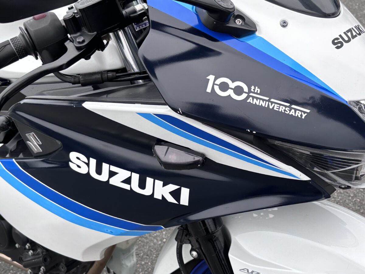 塗装は横から見たときに青いラインがつながるように、相当な時間をかけて調整しました。紺・青・水色のいかにもスズキのバイク!って色味がとても気に入ってます。