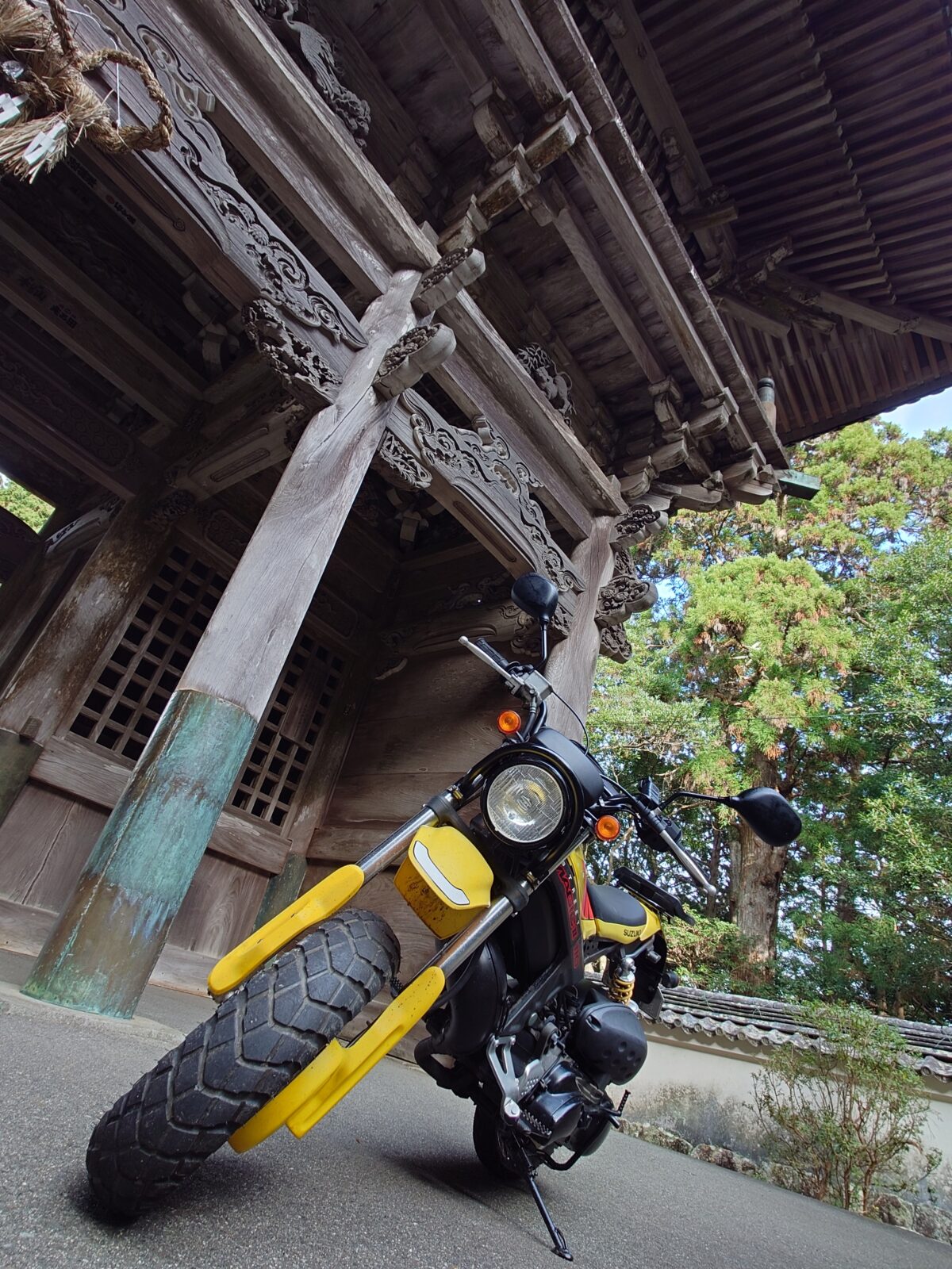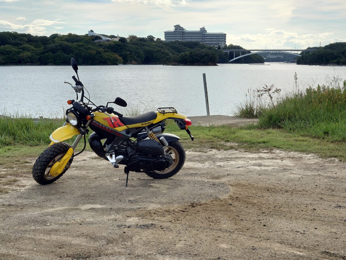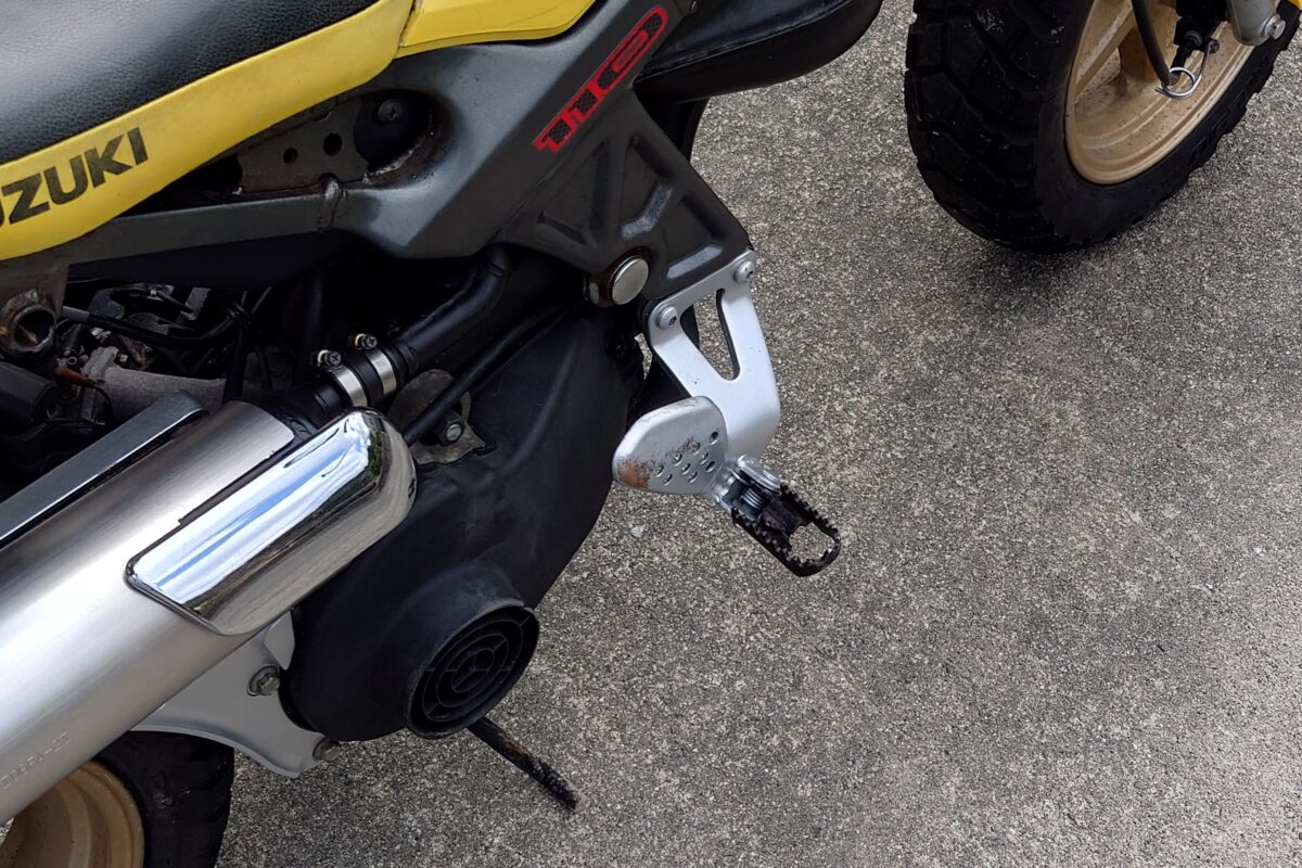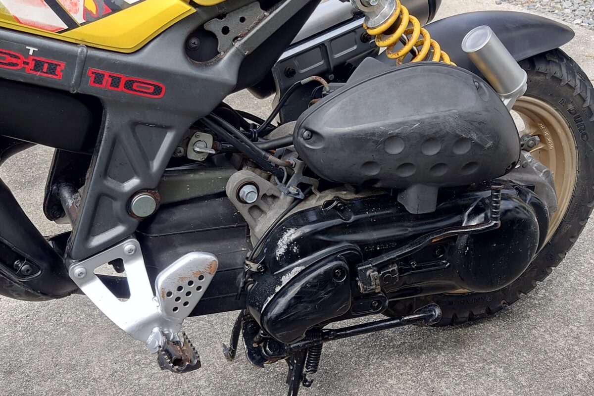 最高出力10PSを発揮する2サイクル単気筒110ccエンジン(アドレス110と共通のエンジン)をコンパクトな車体に積み込んだシルエットは「異形」の一言に尽きます。