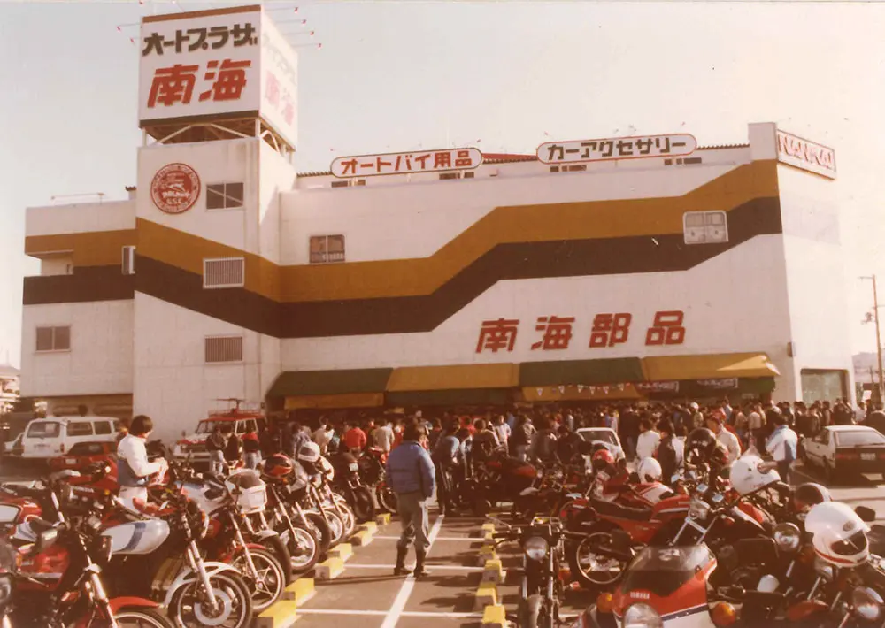 南海部品 箕面店は昭和53年7月、当時日本最大規模のオートバイ用品大型小売店として箕面市萱野に誕生致しました。数多いバイクアイテムを取り揃え、中でも圧倒的なヘルメットのラインナップはお客様に愛され続ける理由の1つです。