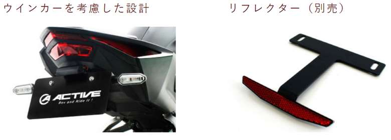 後方から見える表面積が重要となるため、ノーマルウインカーを適切な位置に装着するよう設計されている。社外ウインカーへの変更を考慮し、ウインカーステー取り外し可能なタイプも一部設定している。
