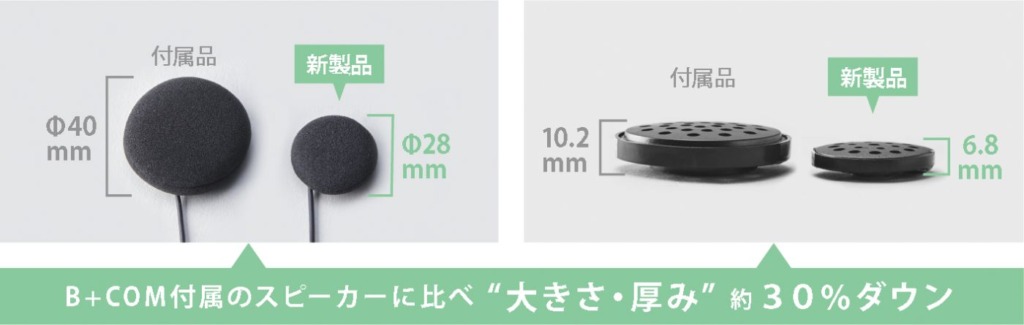 今回発売する「ヘルメットスピーカーセット 5スモール」は、さらにフィッティングの自由度が上がり、より多くのヘルメットに取り付け可能な B+COM 史上最もコンパクトに設計されたモデル。