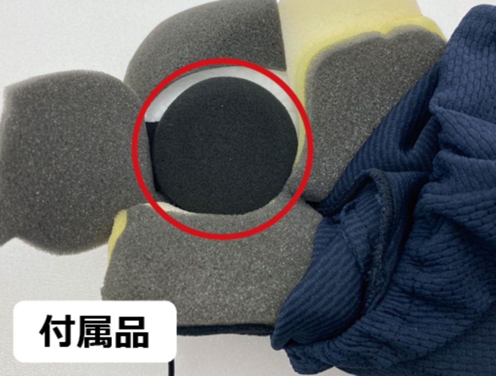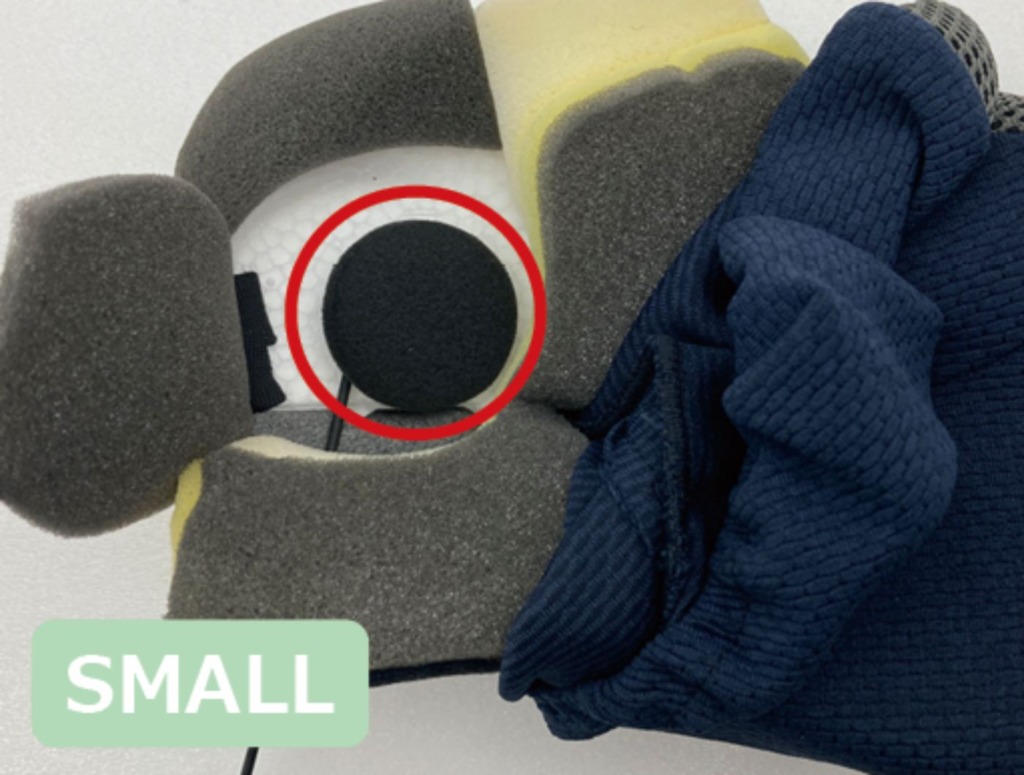 SB6X/ONE 付属スピーカーは、ヘルメットのイヤースペースに収まるよう計算された外径 40mm の薄型設計で、ヘルメットの脱着もスムーズに行うことが可能だ。
